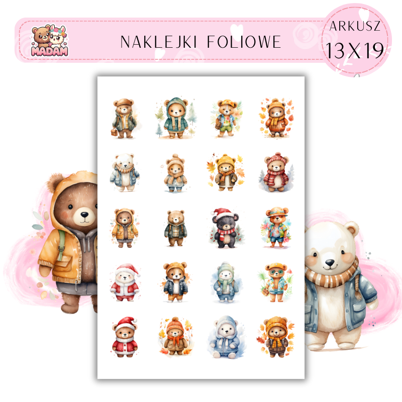 Naklejki Foliowe Jesienno Zimowe Misie 13x19, Madam
