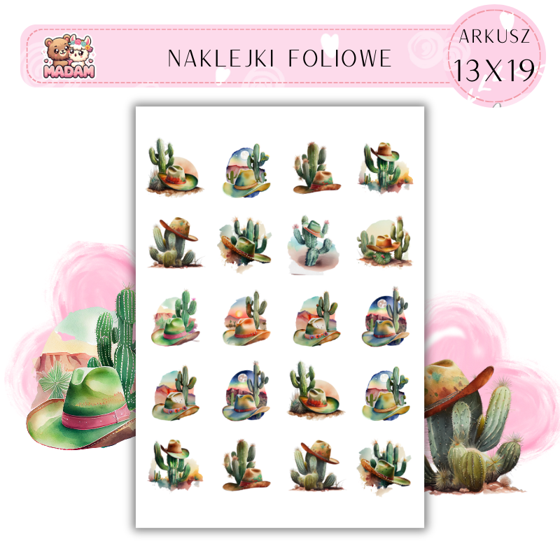 Naklejki Foliowe Kaktusy Kowboj 13x19, Madam