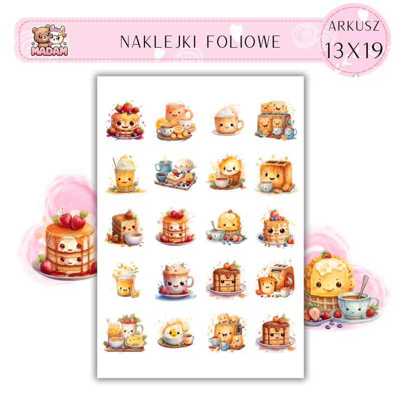 Naklejki Foliowe Kawaii Słodkie Jedzenie 13x19, MaDam
