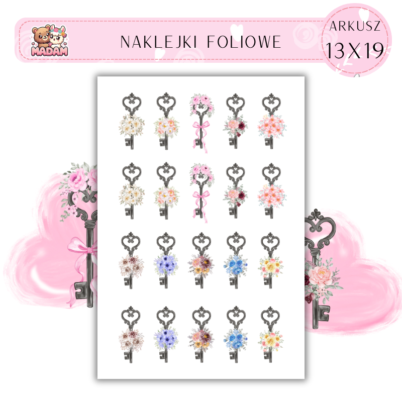 Naklejki Foliowe Klucze z kwiatami 13x19, Madam