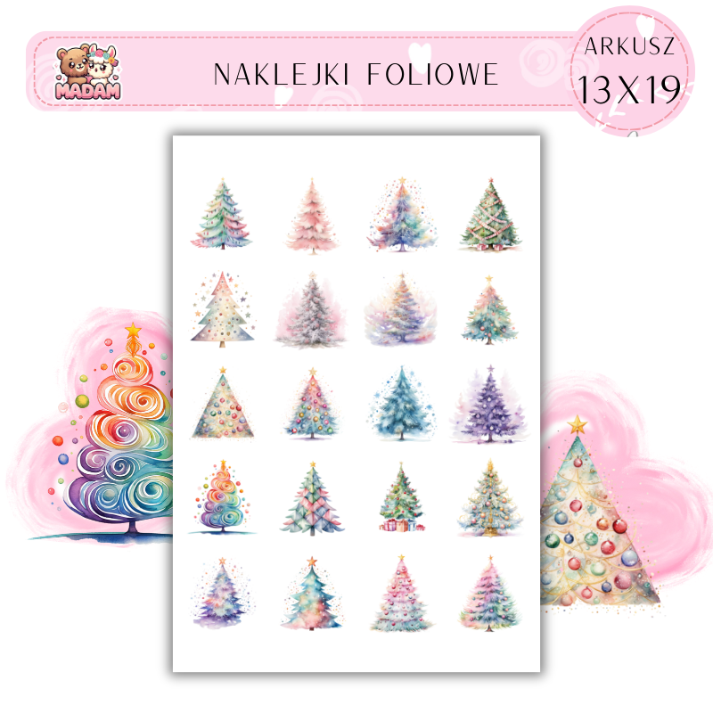 Naklejki Foliowe Kolorowe Choinki Święta 13x19, Madam