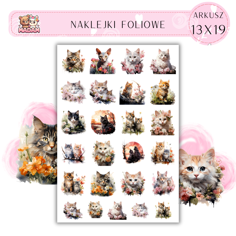 Naklejki Foliowe Koty i Kwiaty 13x19, Madam
