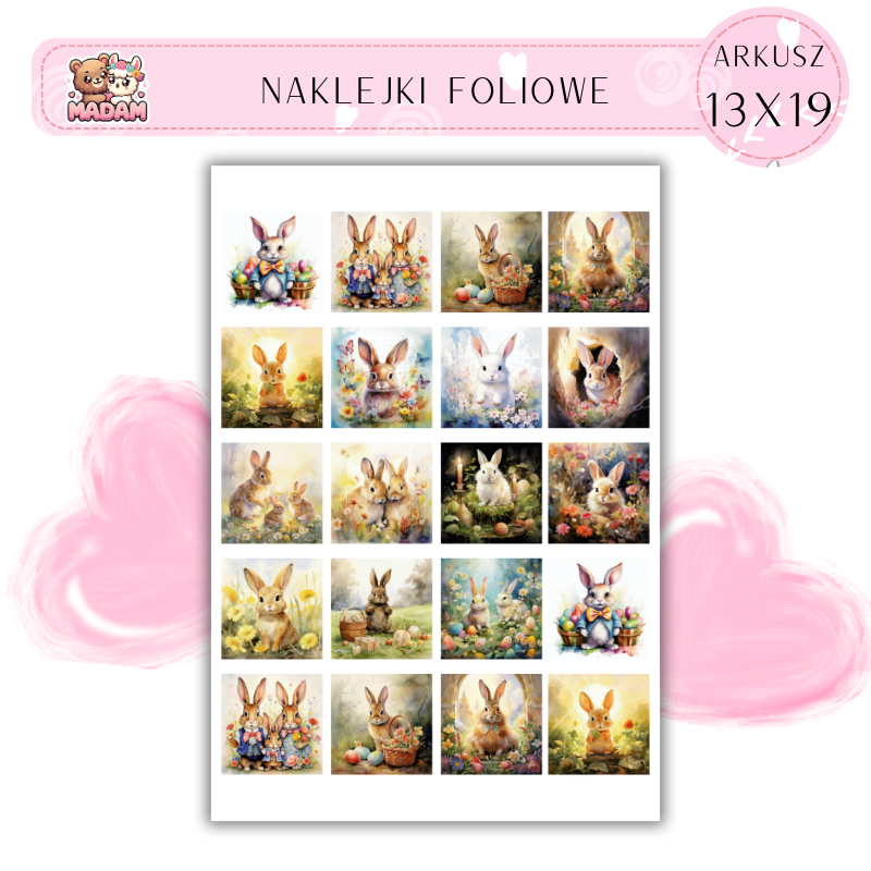 Naklejki Foliowe Króliki Wielkanoc Retro 13x19, Madam