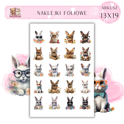 Naklejki Foliowe Króliki w okularach 13x19, Madam