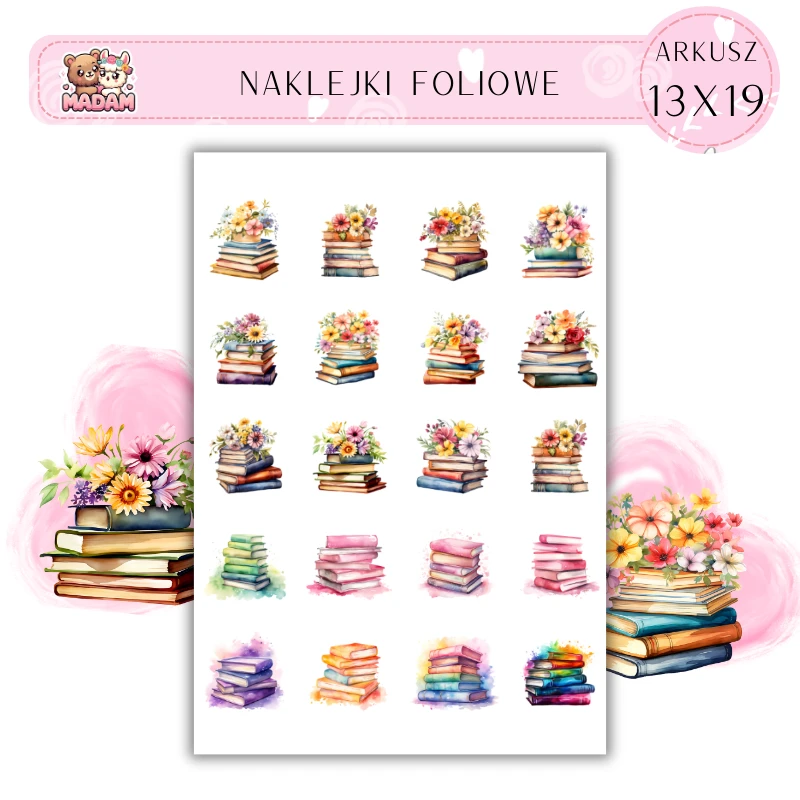 Naklejki Foliowe Książki Kwiaty 13x19, Madam