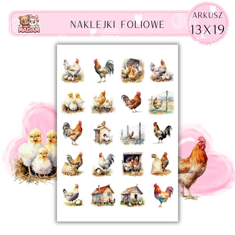 Naklejki Foliowe Kury i Koguty 13x19, Madam
