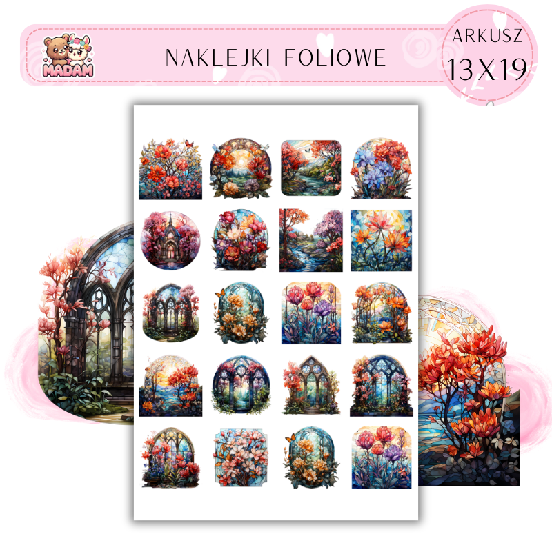 Naklejki Foliowe Kwiatowe Witraże 13x19, Madam
