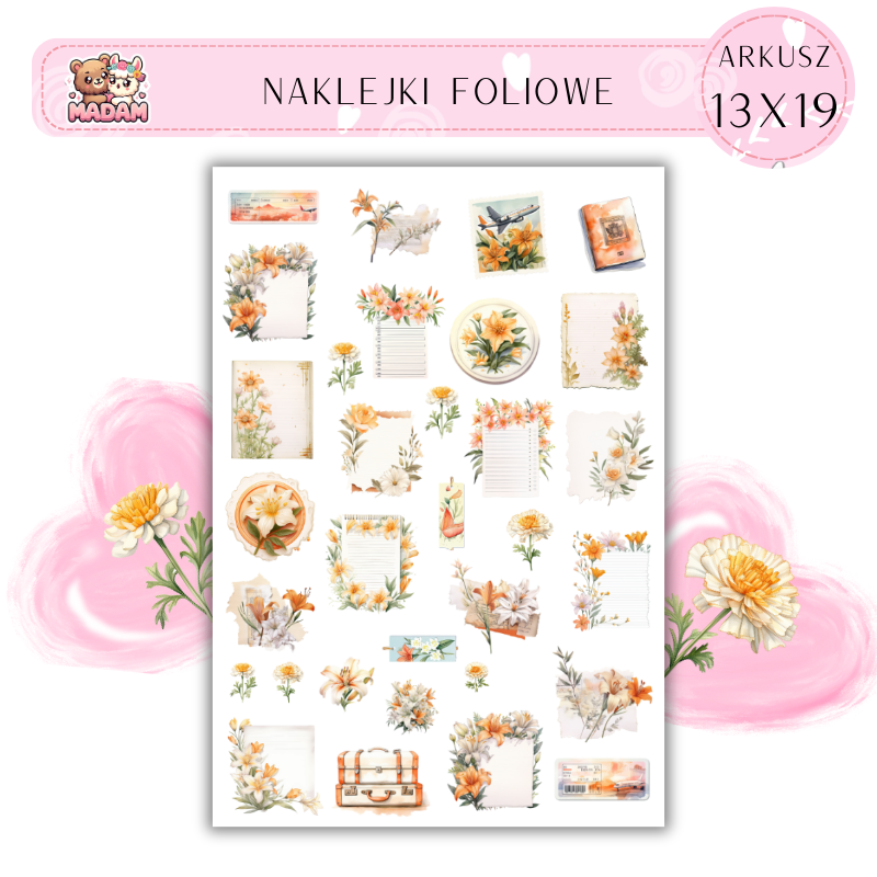 Naklejki Foliowe Kwiaty Podróże Notes 13x19, Madam