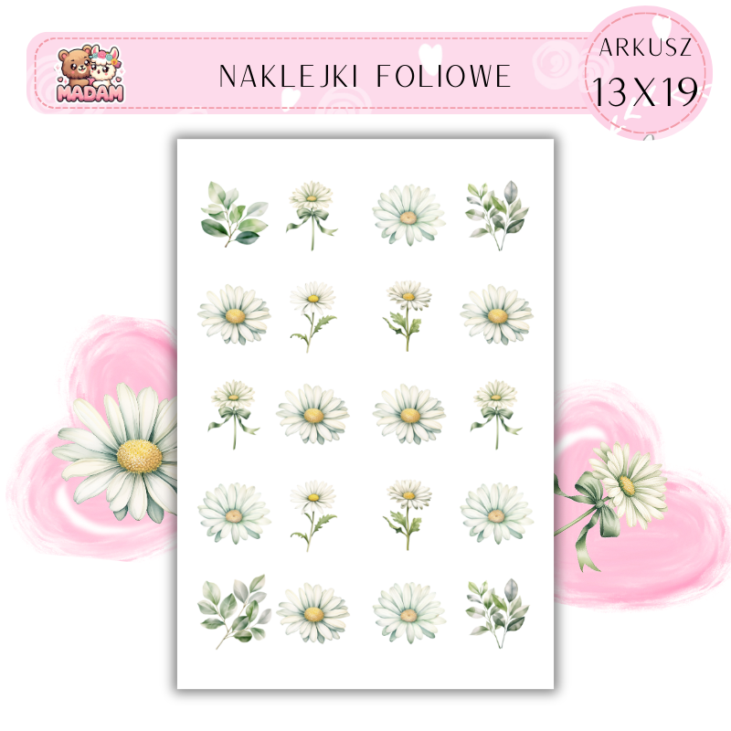 Naklejki Foliowe Kwiaty Stokrotki 13x19, Madam