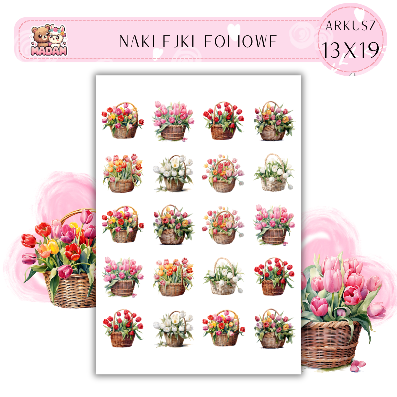 Naklejki Foliowe Kwiaty Tulipany w koszach 13x19, Madam
