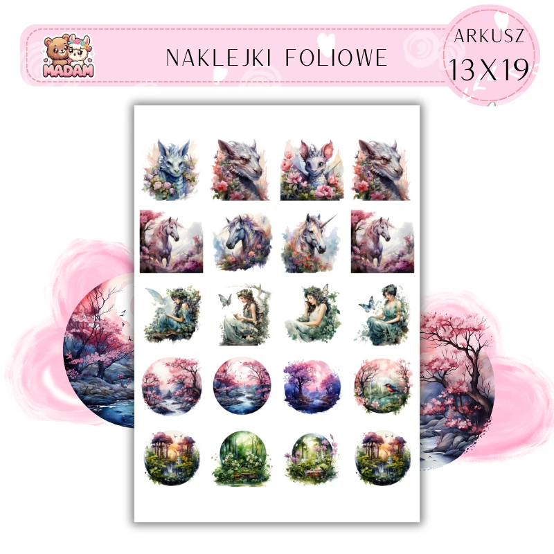 Naklejki Foliowe Magiczny Ogród - Jednorożce Smoki Elfy 13x19, Madam