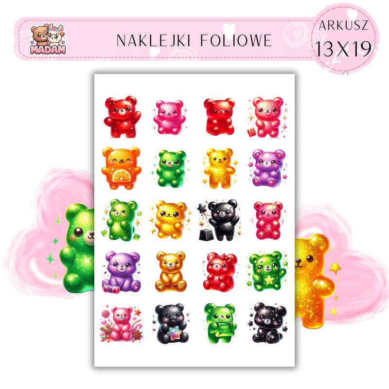Naklejki Foliowe Misie Żelki 13x19, MaDam