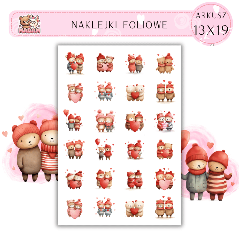 Naklejki Foliowe Misie z sercami Love 13x19, Madam