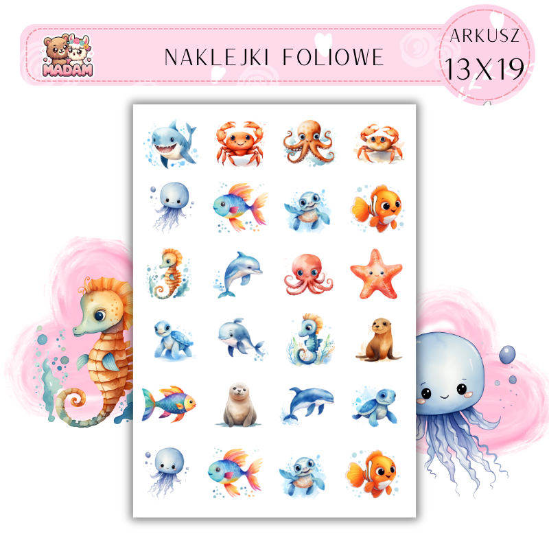 Naklejki Foliowe Morskie Zwierzęta 13x19, Madam