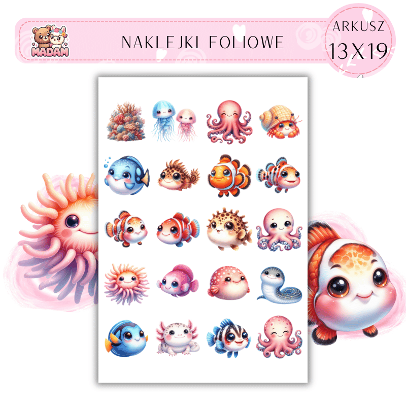 Naklejki Foliowe Morskie Zwierzęta 13x19, Madam