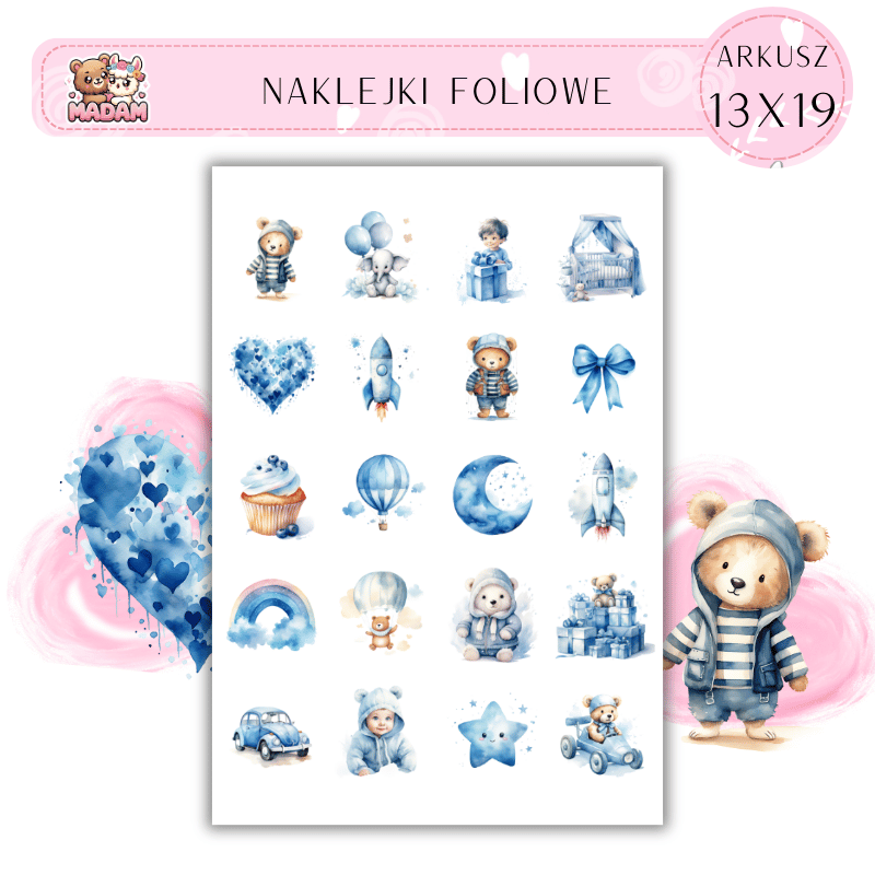 Naklejki Foliowe Niebieskie Baby Shower 13x19, Madam