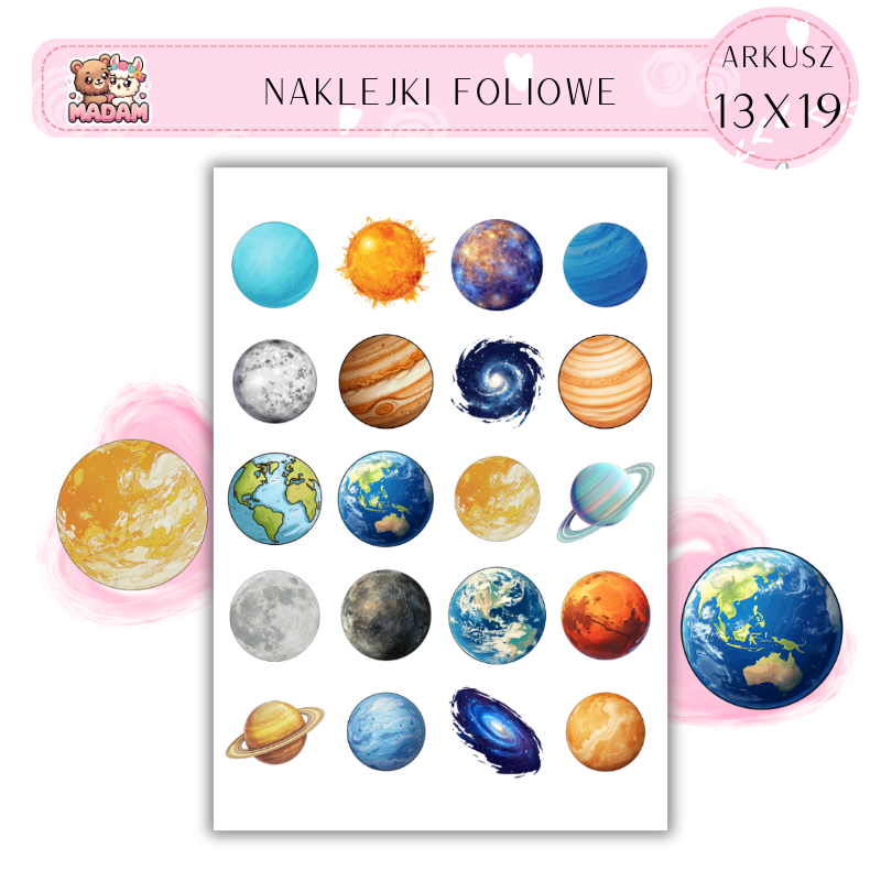 Naklejki Foliowe Planety Kosmos 13x19, Madam
