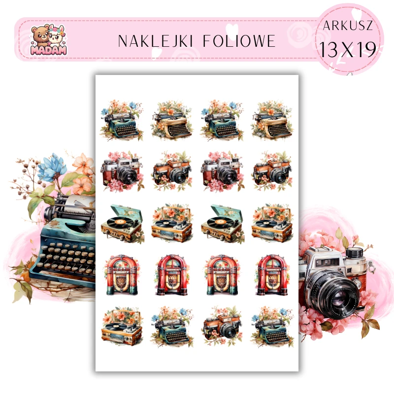 Naklejki Foliowe Przedmioty Kwiatowe Retro 13x19, Madam