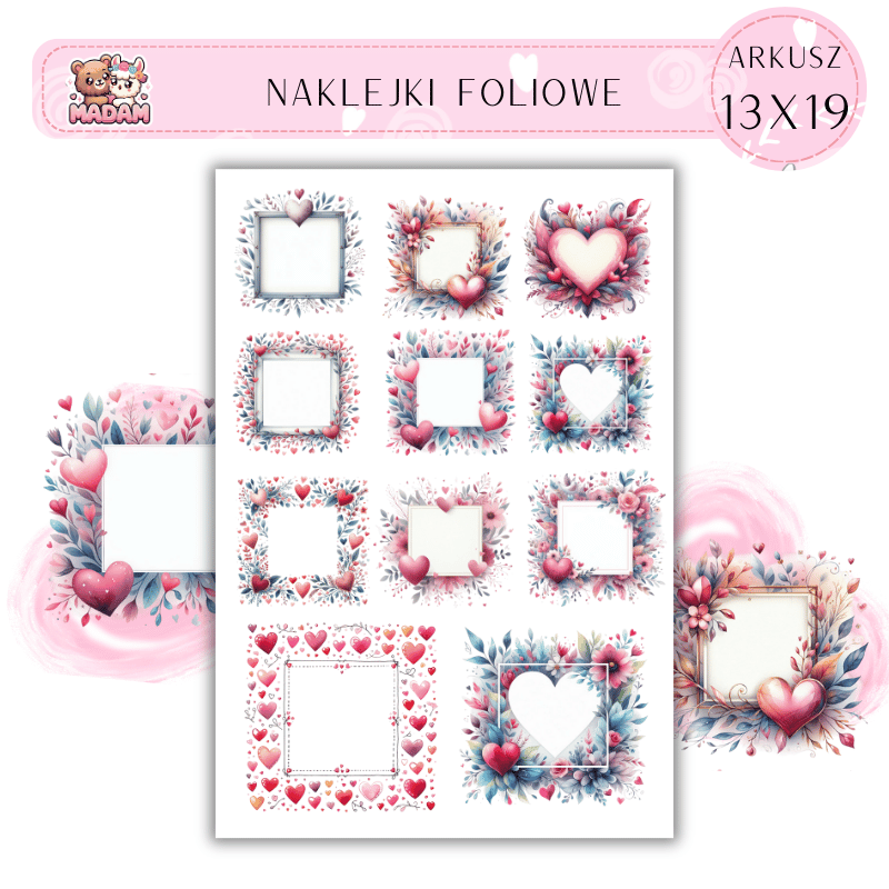 Naklejki Foliowe Ramki Serca z białym tłem 13x19, Madam