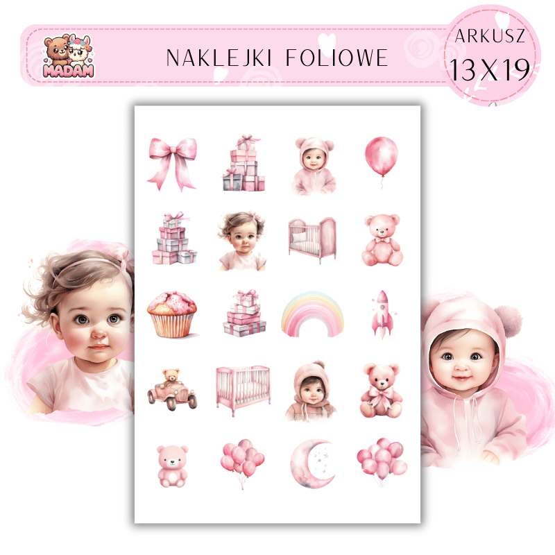 Naklejki Foliowe Różowe Baby Shower 13x19, Madam