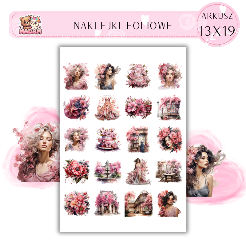 Naklejki Foliowe Różowe Kwiatowe Inspiracje 13x19, Madam