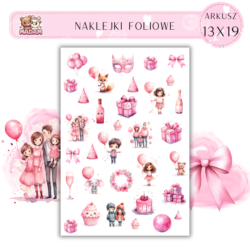 Naklejki Foliowe Różowe Urodziny 13x19, Madam
