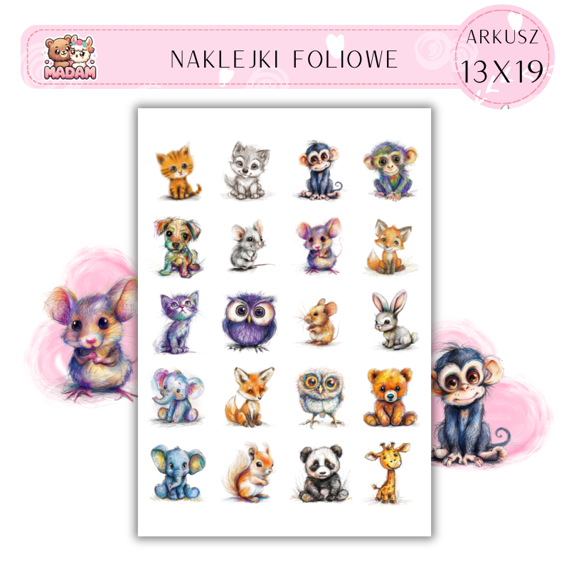 Naklejki Foliowe Rysowane Zwierzęta 13x19, Madam