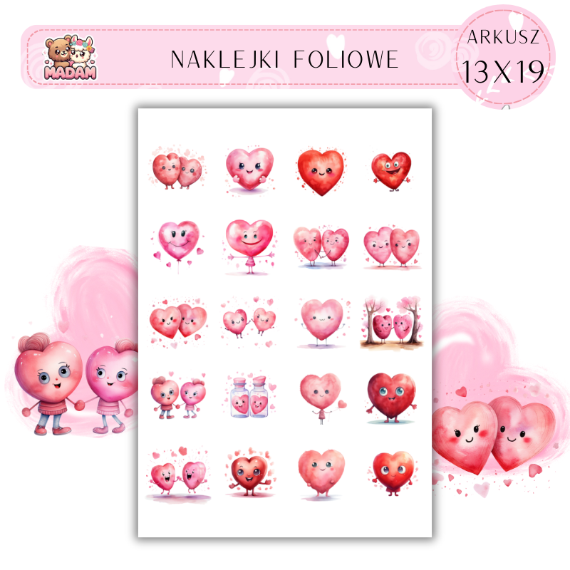 Naklejki Foliowe Serca 13x19, Madam