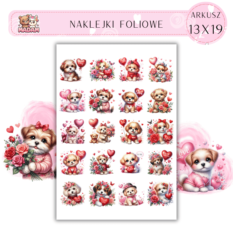 Naklejki Foliowe Słodkie Pieski 13x19, MaDam
