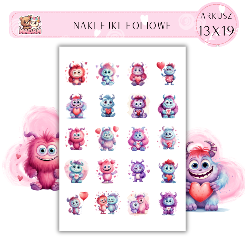 Naklejki Foliowe Słodkie Potworki 13x19, Madam