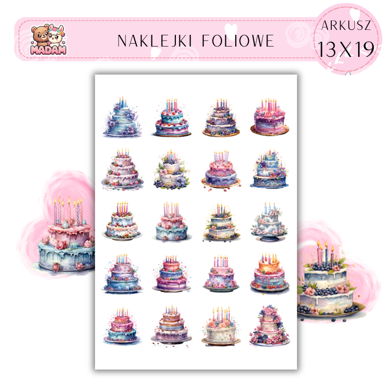Naklejki Foliowe Tort Urodziny 13x19, MaDam