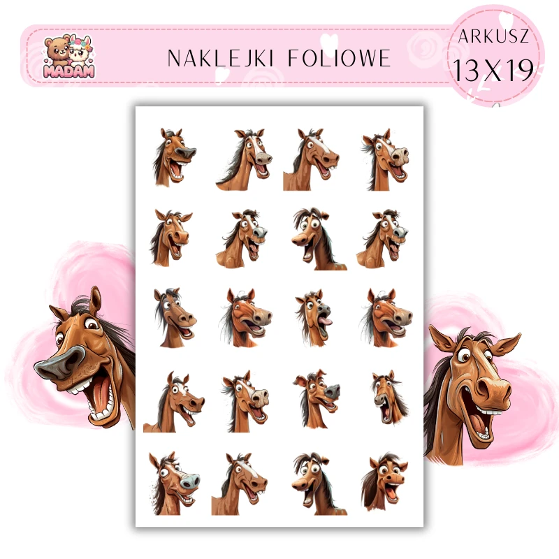Naklejki Foliowe Wesołe Konie 13x19, Madam