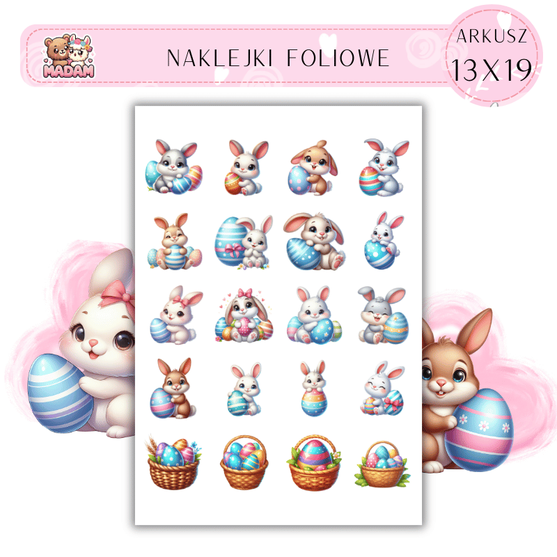 Naklejki Foliowe Wielkanoc Króliki Pisanki 13x19, Madam