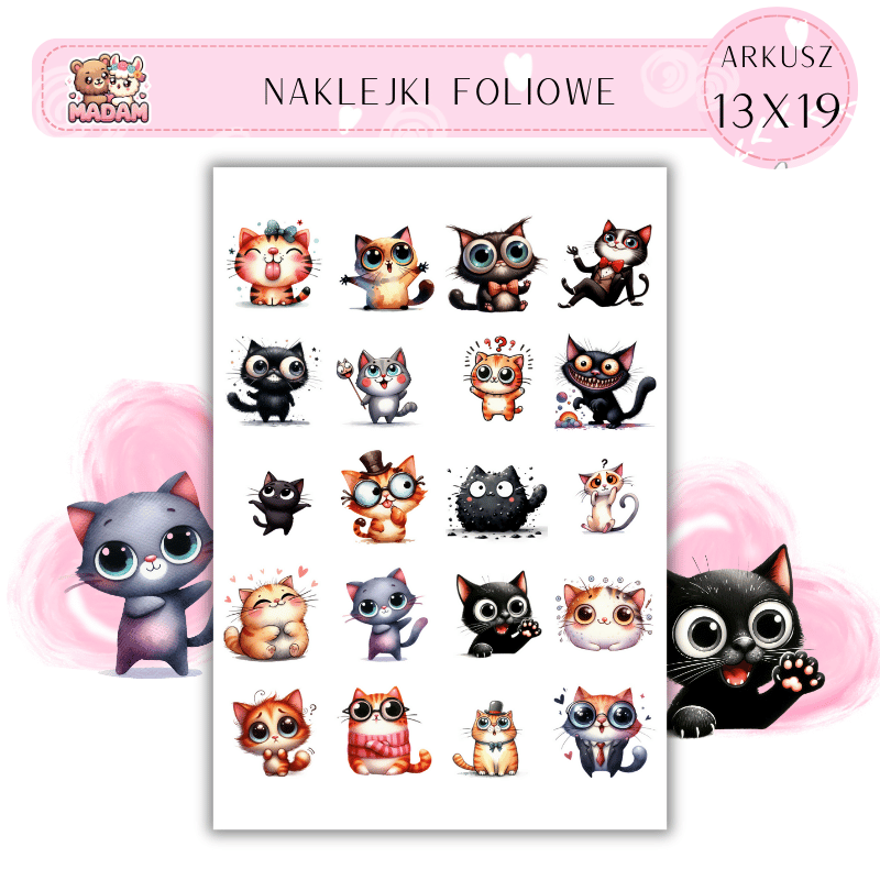 Naklejki Foliowe Zabawne Koty 13x19, Madam