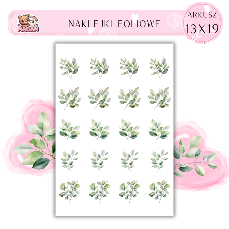 Naklejki Foliowe Zielone Liście 13x19, Madam