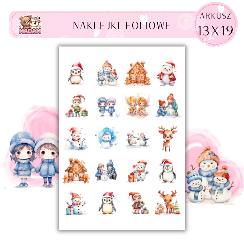 Naklejki Foliowe Zima Święta 13x19, Madam