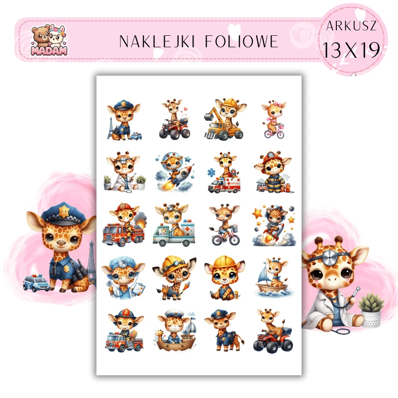Naklejki Foliowe Żyrafa Zawody 13x19, Madam