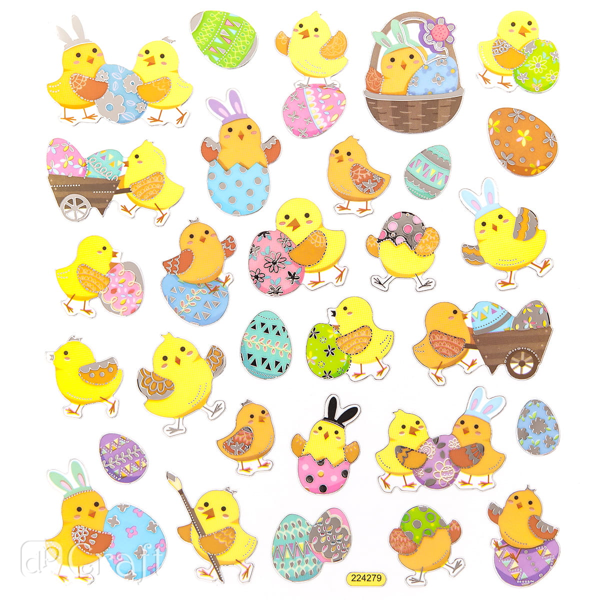 Arkusz kolorowych naklejek z motywem kolorowych kurczaczków. Doskonałe do zdobienia projektów scrapbookingowych, kartek okolicznościowych, pakowania prezentów, a także do wszelkiego rodzaju dziecięcej aktywności twórczej.