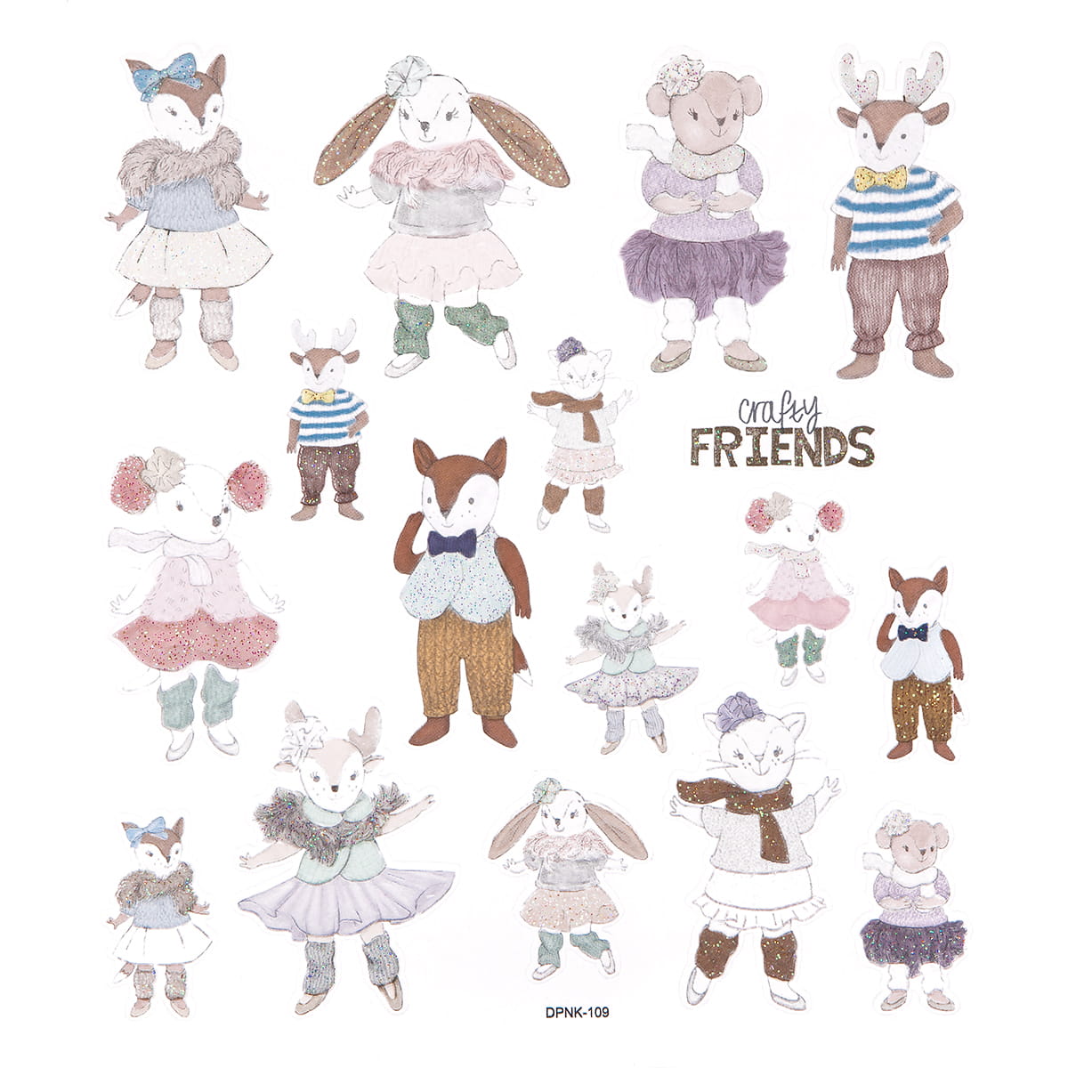 Naklejki Z Brokatem – Crafty Friends, 17 Szt. Dpcraft