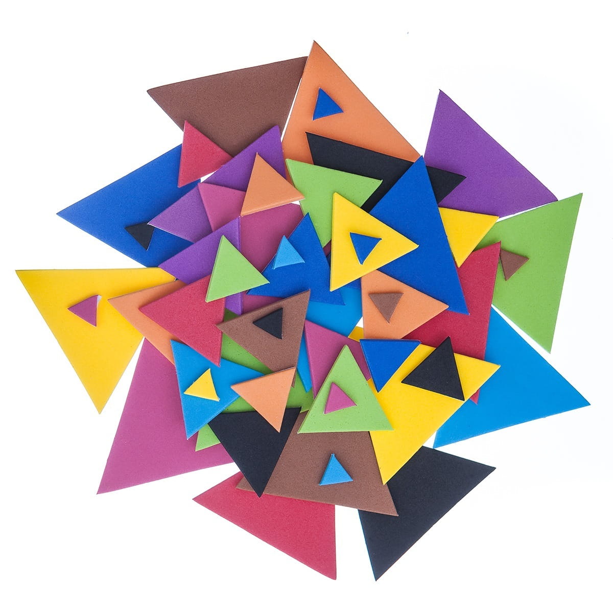 Zestaw naklejek z pianki w kształcie trójkątów, w kilku rozmiarach i kolorach. Świetnie nadają się do wszelkiego rodzaju dziecięcej aktywności twórczej, jak również do zdobienia projektów kreatywnych takich jak kartki okolicznościowe, albumy, pudełka, opakowania prezentów i wielu innych. Ilość w opakowaniu: 100 szt. Rozmiar: 1 cm, 2 cm, 3 cm, 5 cm Kolor: mix 10 kolorów