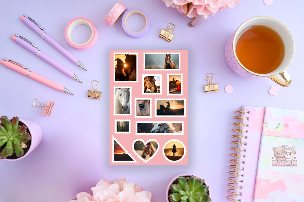 Naklejki Znaczki Pocztowe Konie Bullet Journal Scrapbooking - MaDam Creative