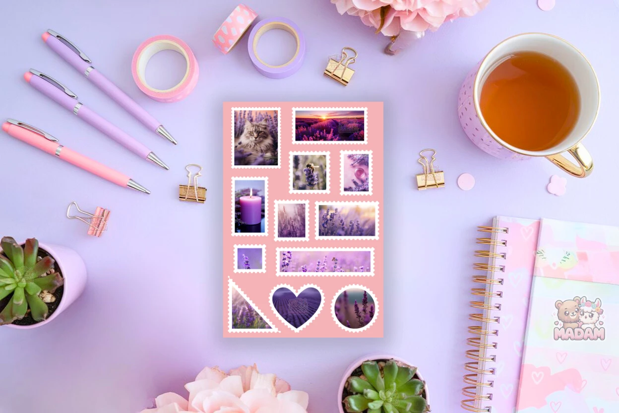 Naklejki Znaczki Pocztowe Lawenda (Lavender) Bullet Journal Scrapbooking - MaDam Creative