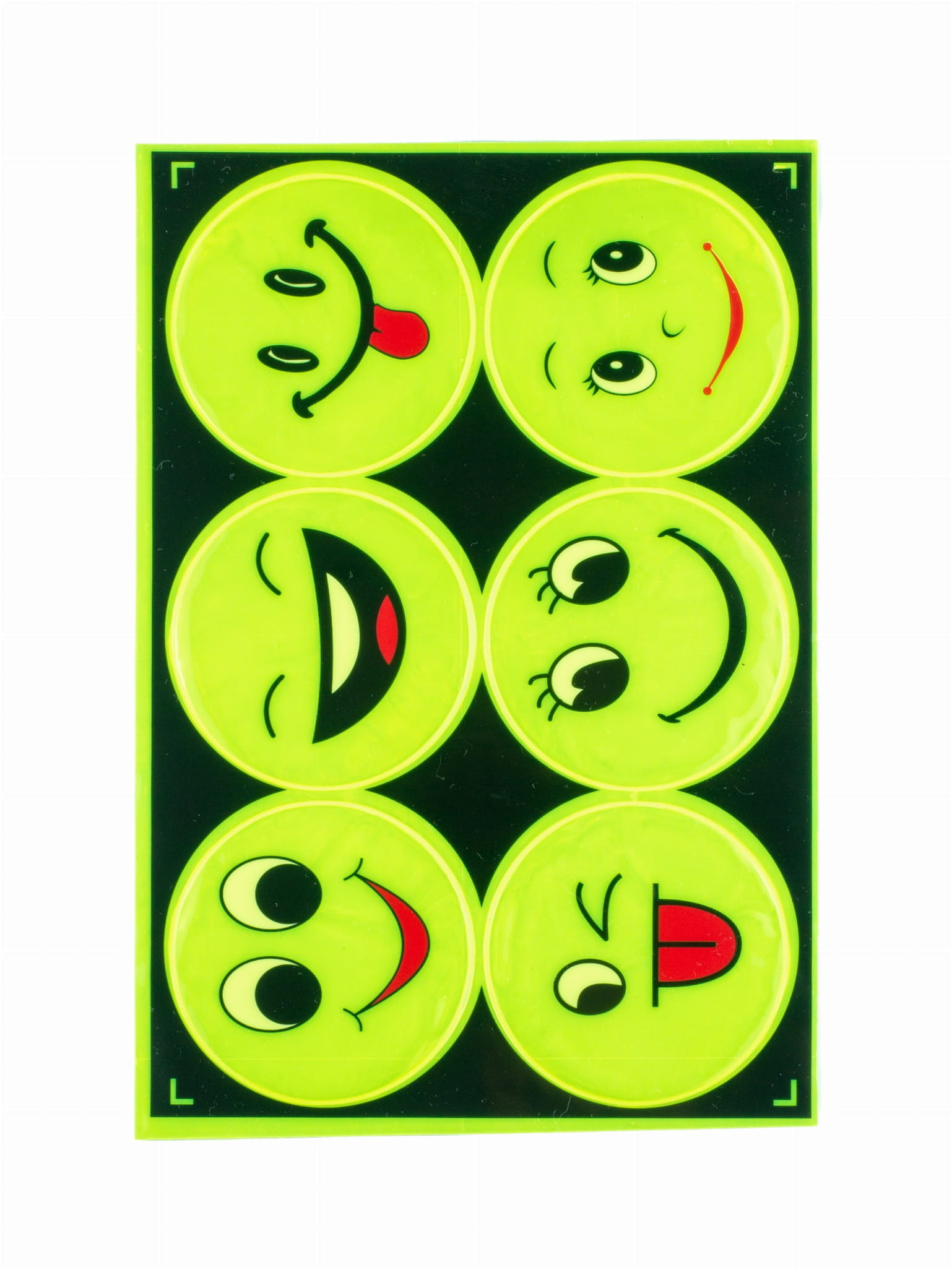 Naklejki odblaskowe buźki, śr. 7 cm. Blister zawiera 6 szt.