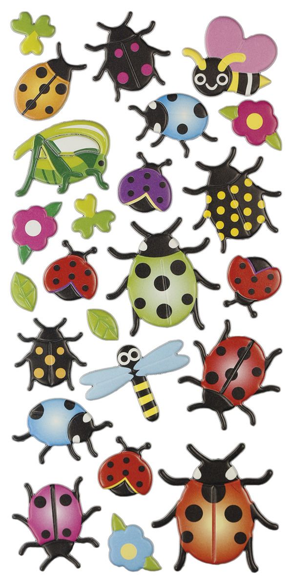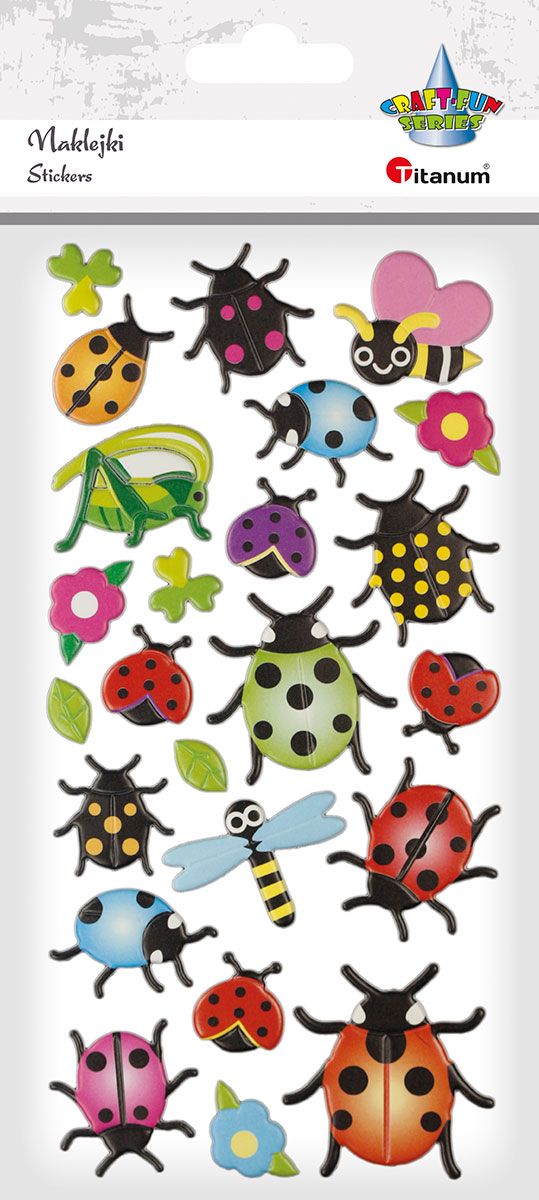 Naklejki wypukłe, wzór: owady. 24 sztuki.