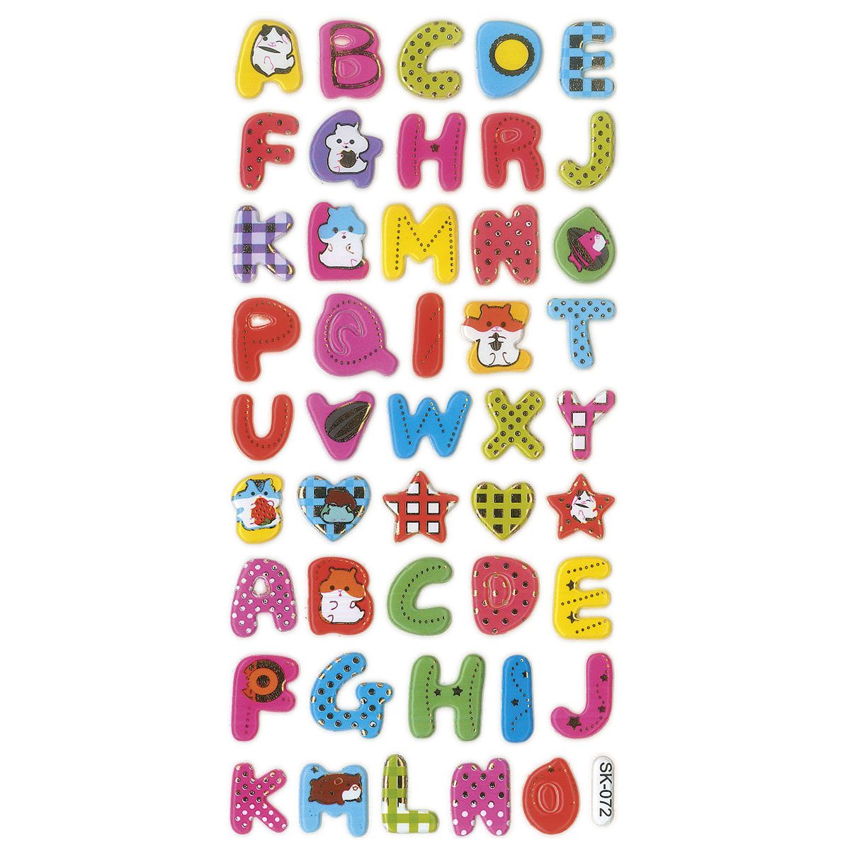 Naklejki wypukłe. Wzór: alfabet. 45 sztuk.