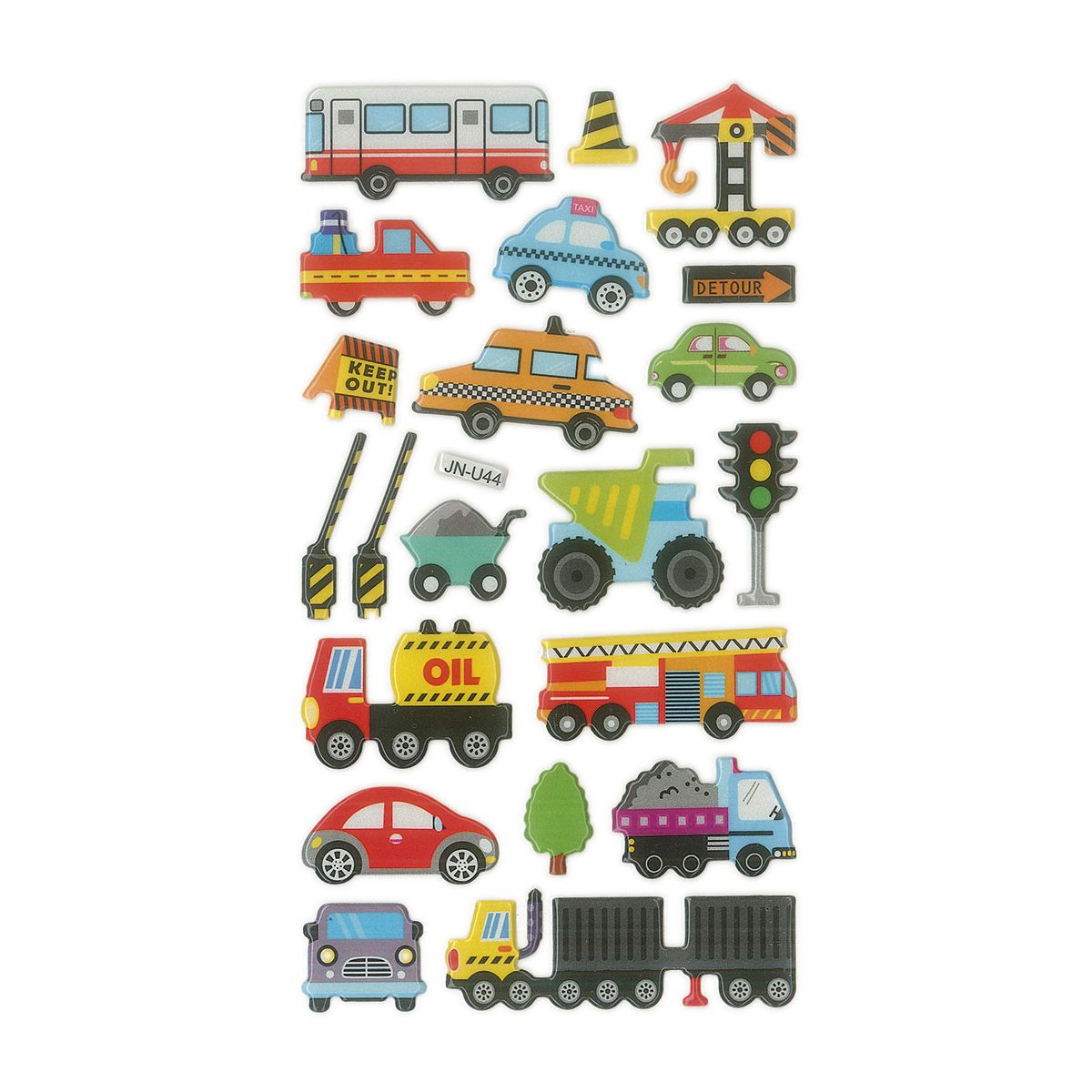 Naklejki wypukłe. Wzór: pojazdy użytkowe. 21 sztuk.