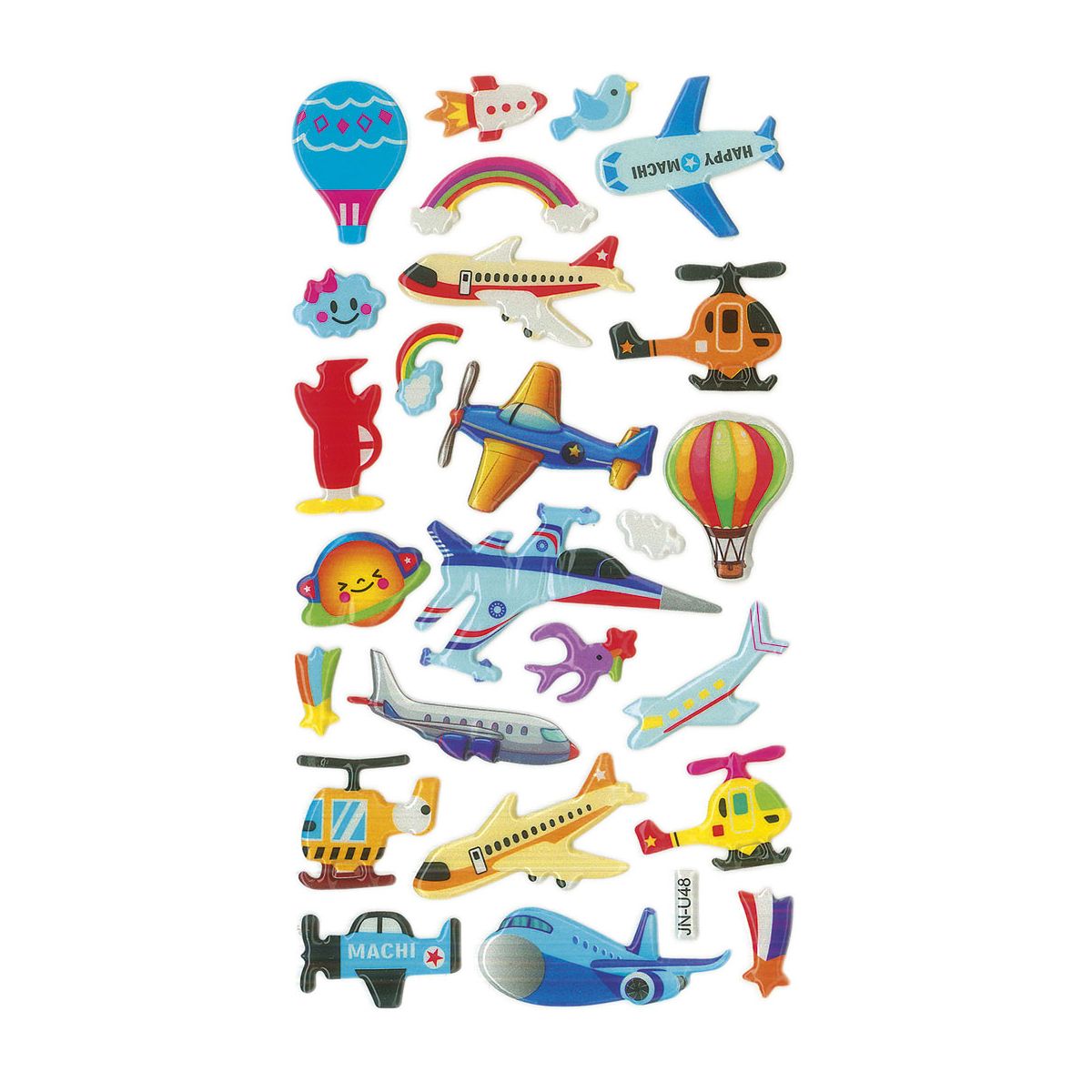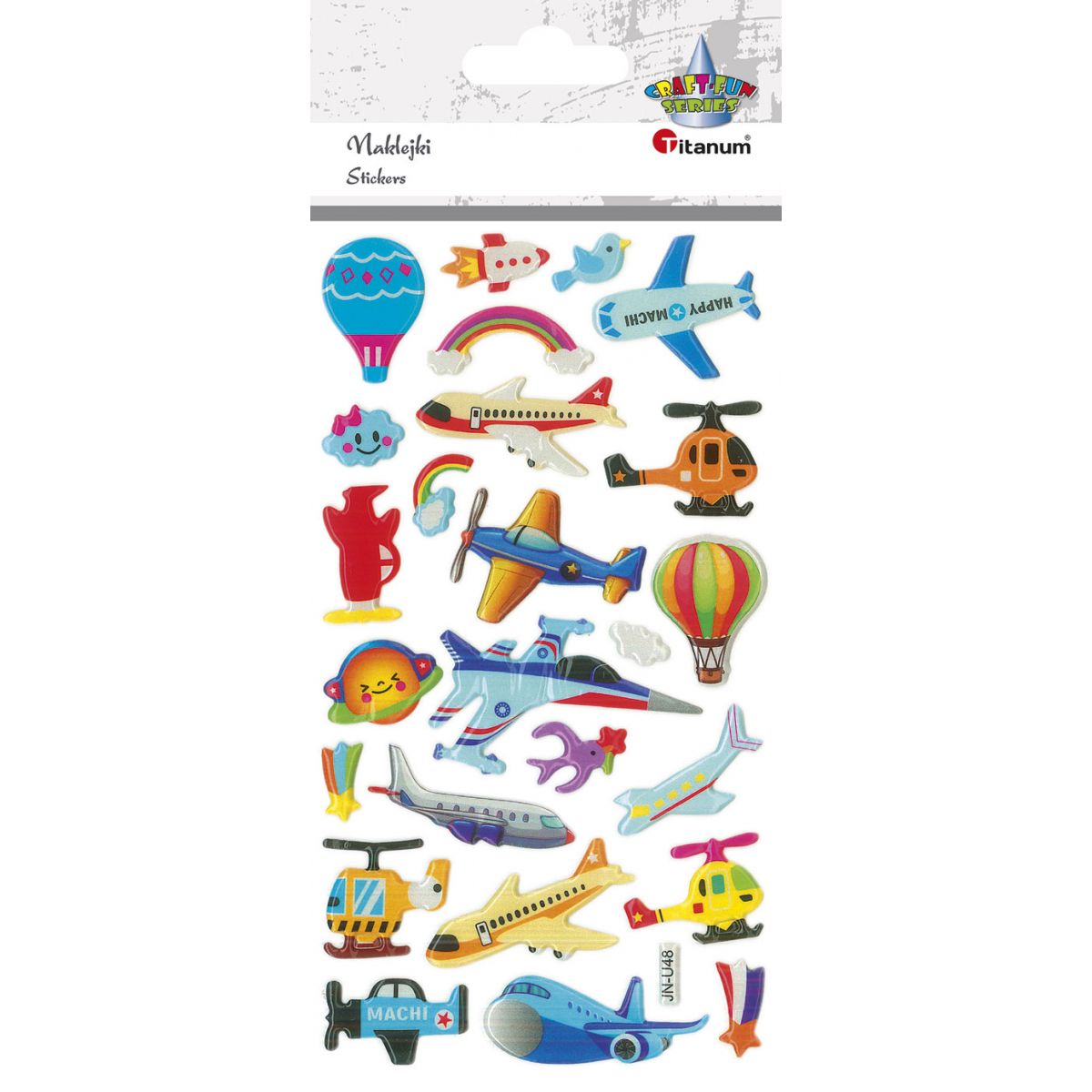 Naklejki wypukłe. Wzór: samoloty, helikoptery, balony. 25 sztuk.