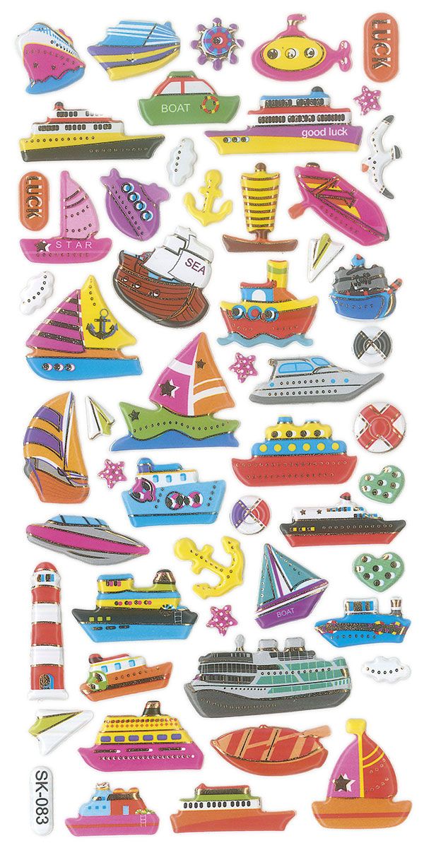 Naklejki wypukłe. Wzór: statki. 54 sztuki.