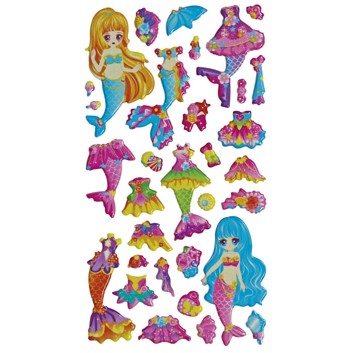 Naklejki wypukłe. Wzór: syrenki i stroje.