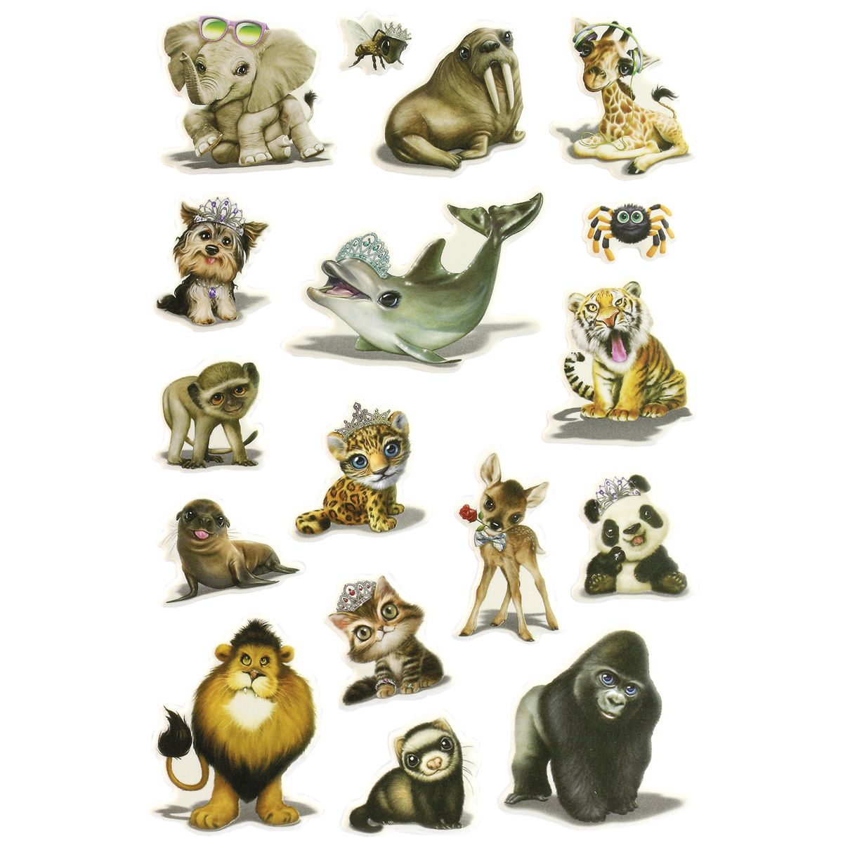 Naklejki wypukłe miękkie. Wzór: zwierzęta. 17 sztuk.